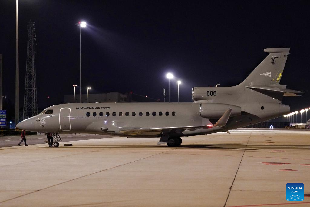 An airplane carrying Hungarian Prime Minister Viktor Orban lands in Beijing, capital of China, Oct. 15, 2023. Orban will attend the third Belt and Road Forum for International Cooperation. (Xinhua/Peng Ziyang)