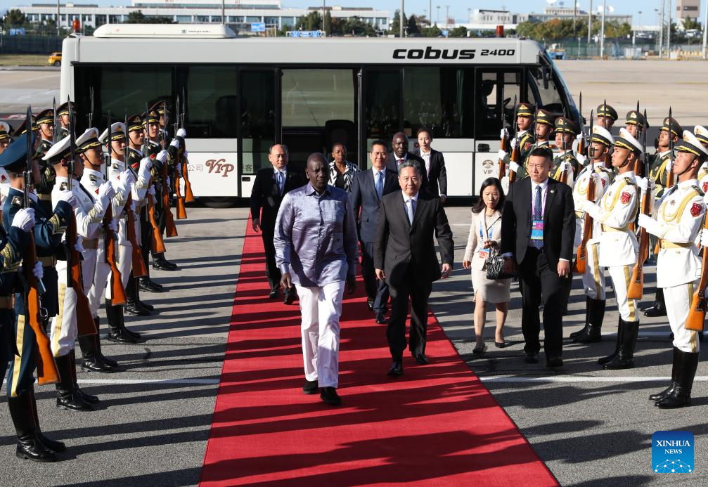 Kenyan President William Ruto arrives in Beijing, capital of China, Oct. 15, 2023. Ruto will attend the third Belt and Road Forum for International Cooperation. (Xinhua/Lyu Shuai)
