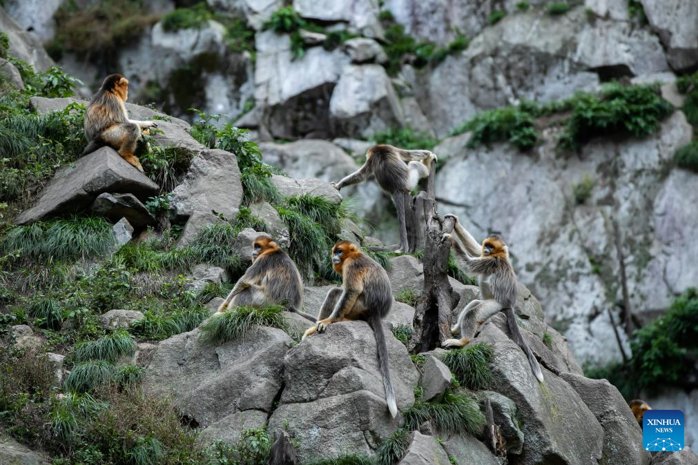 Between April and May this year, 11 monkey cubs had been born at the Yuhe area of the Giant Panda National Park. (Xinhua/Zhang Xinxin)
