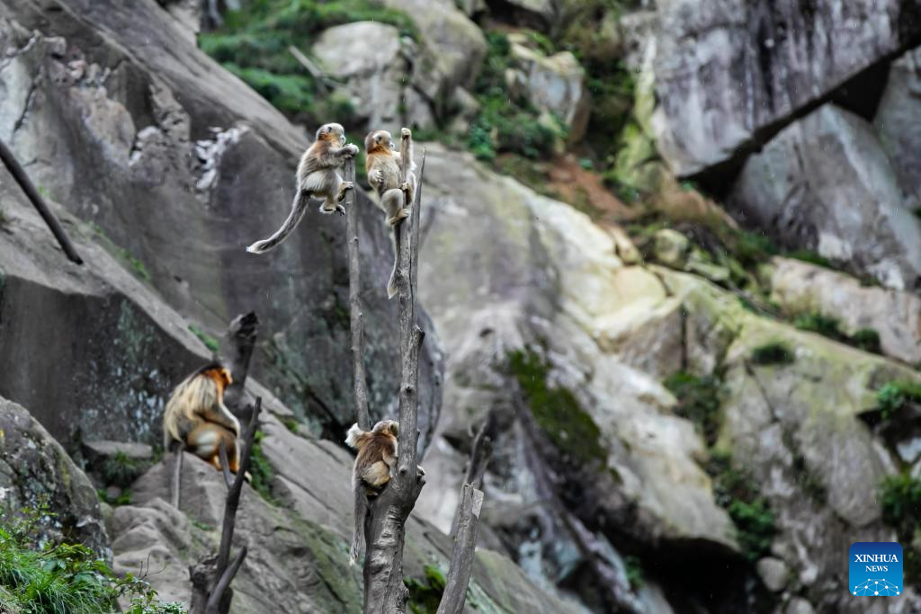 Between April and May this year, 11 monkey cubs had been born at the Yuhe area of the Giant Panda National Park. (Xinhua/Lang Bingbing)