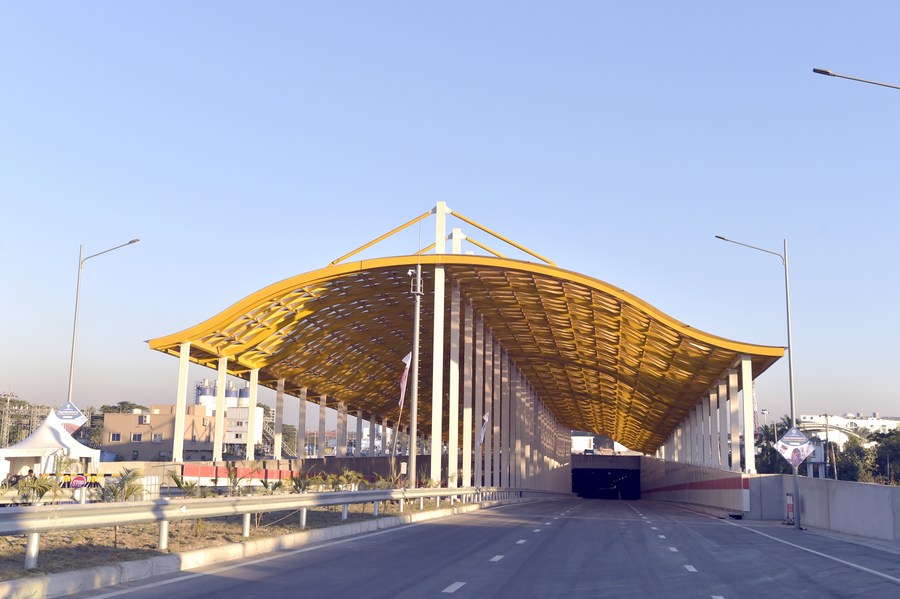 This photo taken on Nov. 26, 2022 shows main gate of an underwater tunnel in Chattogram, Bangladesh. The underwater tunnel in Bangladesh built by a Chinese company has marked the civil works completion of its south tube. (Xinhua)