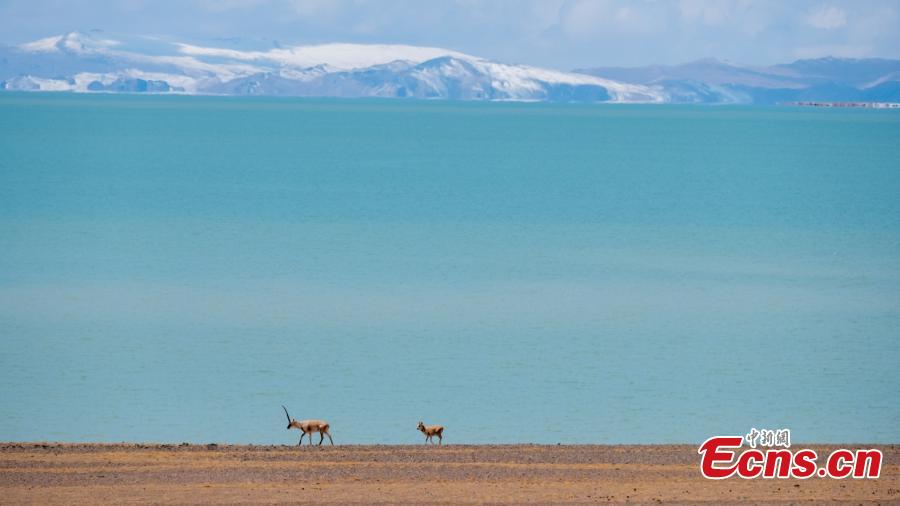 Aerial view of Serling Tso Lake in southwest China's Tibet Autonomous Region. It is the largest lake in Tibet and the second-biggest saltwater lake in China, with an altitude of 4,530 meters. (Photo: China News Service/Jiang Feibo)