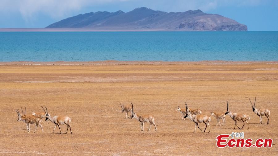 Aerial view of Serling Tso Lake in southwest China's Tibet Autonomous Region. It is the largest lake in Tibet and the second-biggest saltwater lake in China, with an altitude of 4,530 meters. (Photo: China News Service/Jiang Feibo)