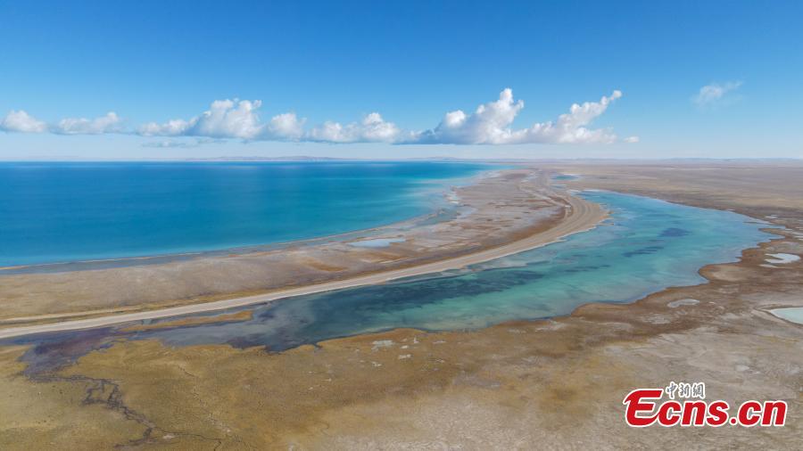 Aerial view of Serling Tso Lake in southwest China's Tibet Autonomous Region. It is the largest lake in Tibet and the second-biggest saltwater lake in China, with an altitude of 4,530 meters. (Photo: China News Service/Jiang Feibo)