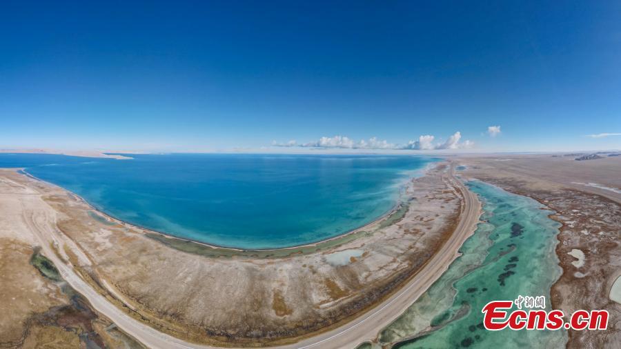 Aerial view of Serling Tso Lake in southwest China's Tibet Autonomous Region. It is the largest lake in Tibet and the second-biggest saltwater lake in China, with an altitude of 4,530 meters. (Photo: China News Service/Jiang Feibo)