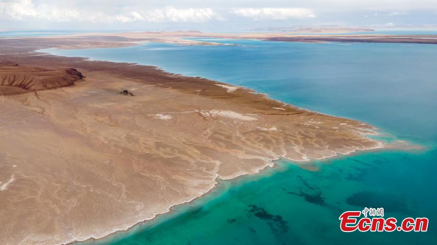 Aerial view of Serling Tso Lake in southwest China's Tibet Autonomous Region. It is the largest lake in Tibet and the second-biggest saltwater lake in China, with an altitude of 4,530 meters. (Photo: China News Service/Jiang Feibo)