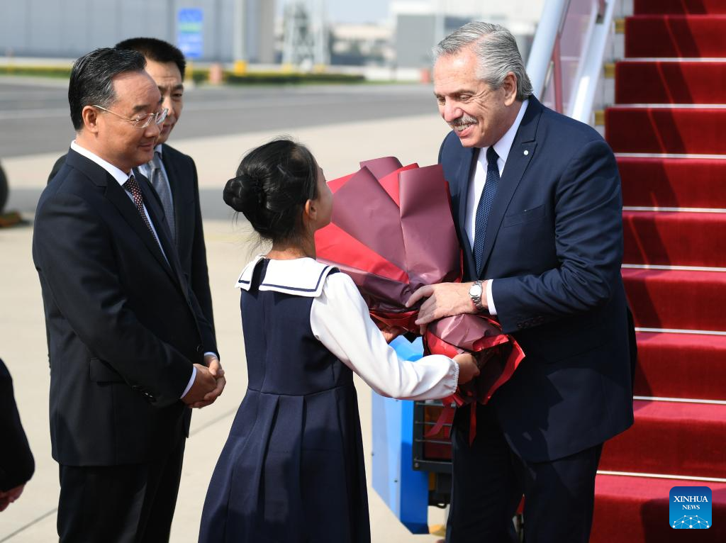 BEIJING, Oct. 17 (Xinhua) -- Argentine President Alberto Fernandez on Tuesday arrived in Beijing to attend the third Belt and Road Forum for International Cooperation.?