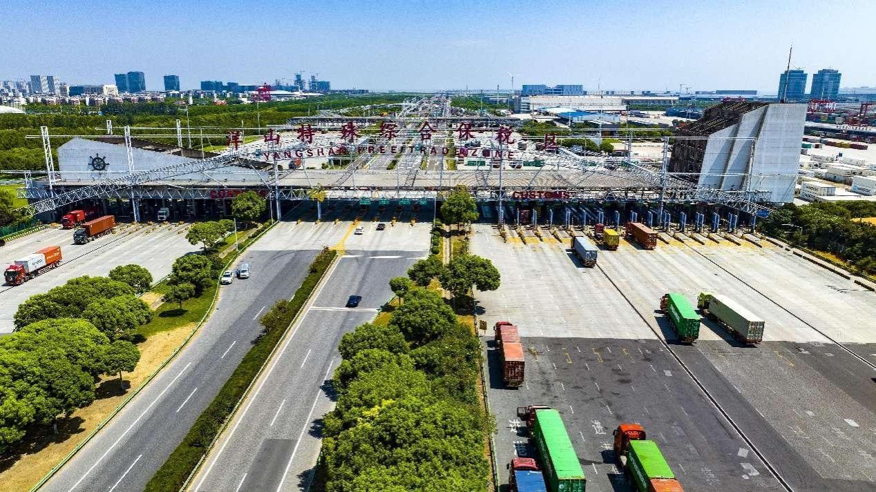 Photo shows the Yangshan Free Trade Zone of the China (Shanghai) Pilot Free Trade Zone. (People's Daily Online/Ji Haixin)
