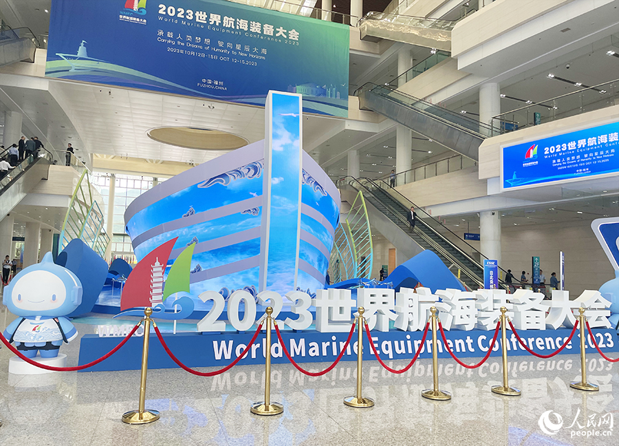 Photo shows an exterior view of the venue of the World Marine Equipment Conference 2023 and the China Marine Equipment Expo 2023, which were held simultaneously in Fuzhou, southeast China's Fujian Province. (People's Daily Online/Lin Ying)