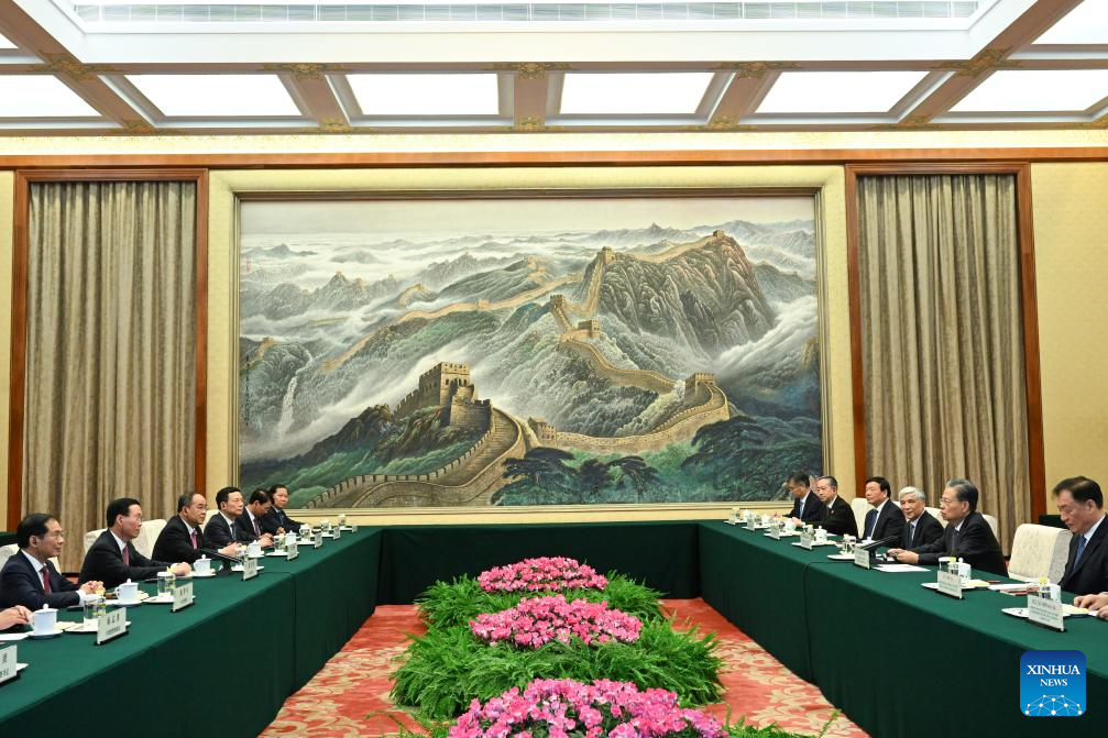 BEIJING, Oct. 17 (Xinhua) -- China's top legislator Zhao Leji met with Vietnamese President Vo Van Thuong, Kazakh President Kassym-Jomart Tokayev and Thai Prime Minister Srettha Thavisin respectively in Beijing on Tuesday.