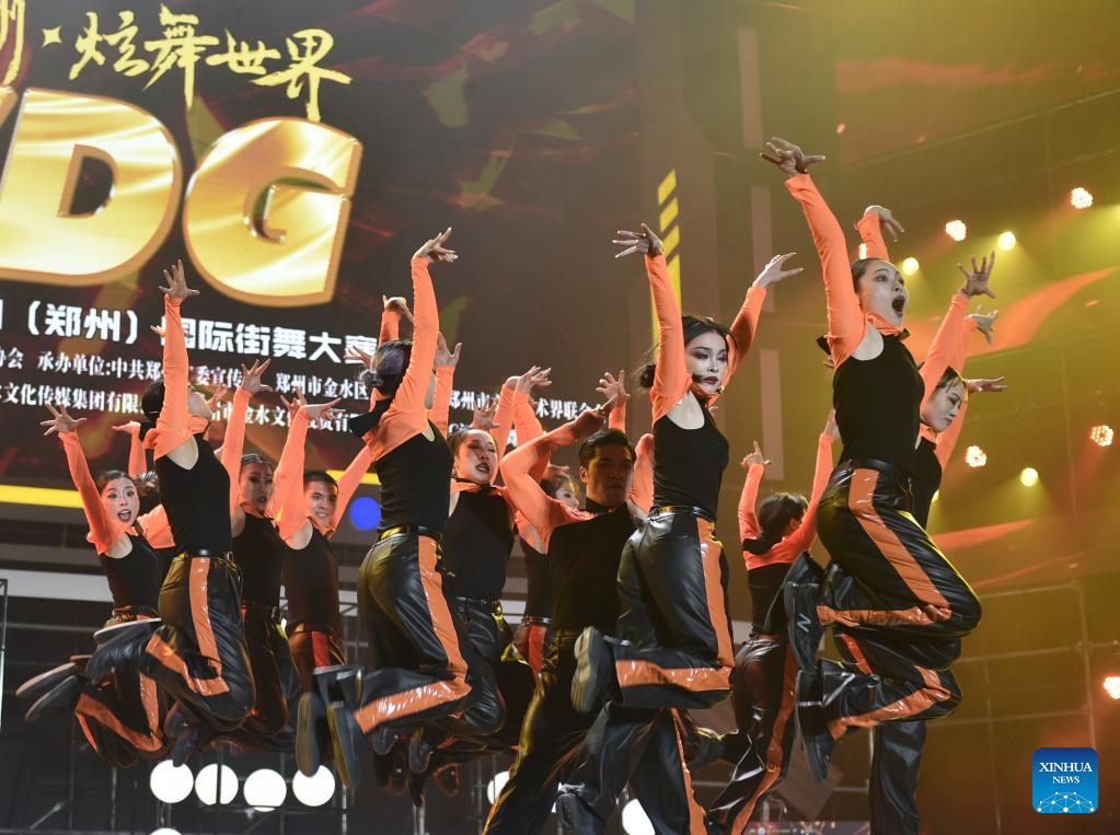 Dancers perform during the final of a street dance competition in Zhengzhou, central China's Henan Province, Oct. 16, 2023. The final of the ninth World Dance Games (WDG) China international street dance competition was held here Monday evening. Nearly 3,000 dancers from home and broad were engaged in the ninth WDG competition. (Xinhua/Wu Gang)