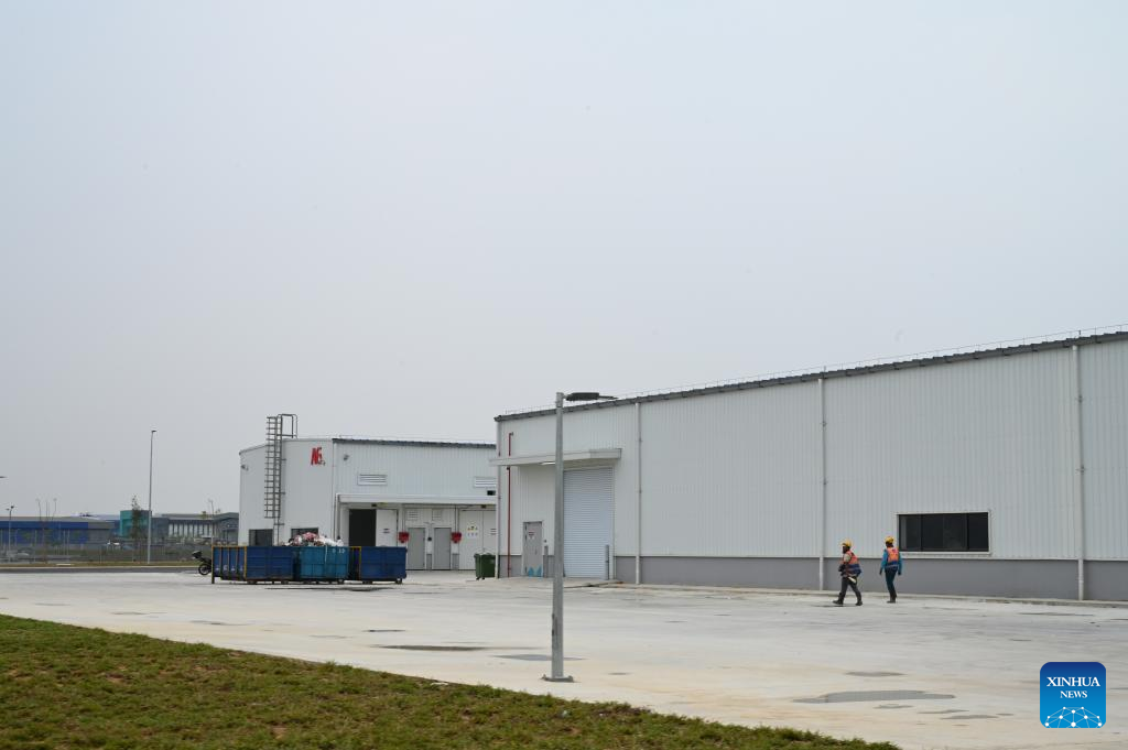 This photo taken on Oct. 17, 2023 shows a new factory launched by LONGi Green Energy Technology Co., Ltd., a leading enterprise in the solar photo-voltaic (PV) industry in China, at Selangor state of Malaysia. (Photo by Cheng Yiheng/Xinhua)