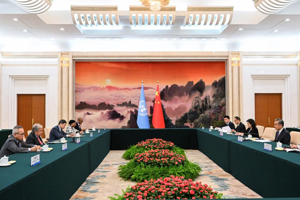 China stands ready to deepen cooperation with the UN across the board, resist and reject unilateralism and bullying, and accelerate the progress of the 2030 Agenda for Sustainable Development with common development as a priority, according to Wang.