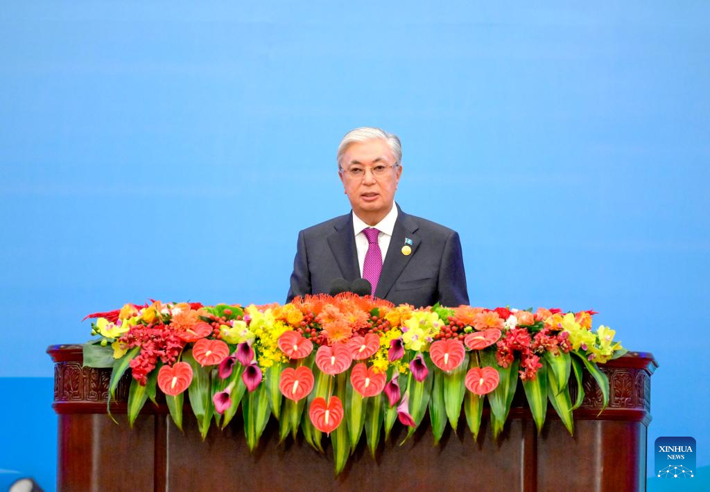 Kazakh President Kassym-Jomart Tokayev addresses the opening ceremony of the third Belt and Road Forum for International Cooperation in Beijing, capital of China, Oct. 18, 2023. (Xinhua/Li Xueren)