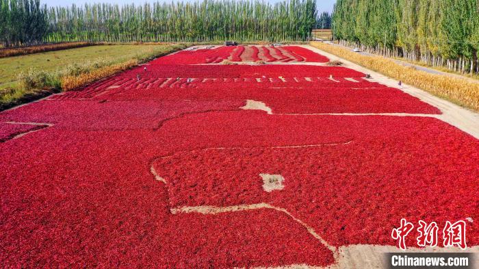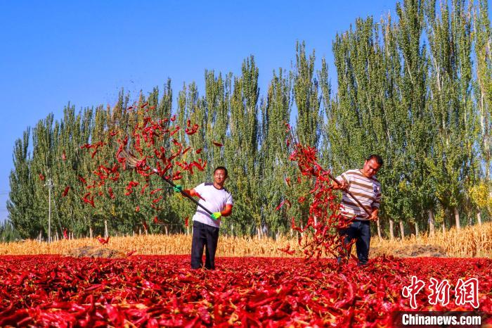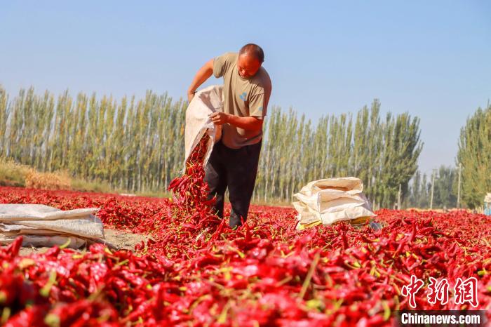 Farmers have been busy sun drying chili peppers in a village of Bohu county. "Planting chili peppers guarantees a stable income and better lives," said Dong Zhiqiang, a resident in the village.