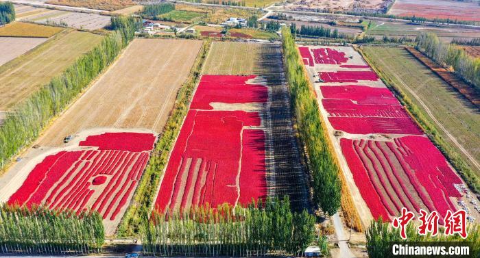 Aerial photo shows sun-drying fields in Bohu county, Bayingolin Mongolian Autonomous Prefecture, northwest China's Xinjiang Uygur Autonomous Region. (Photo/Duguerjiafu)