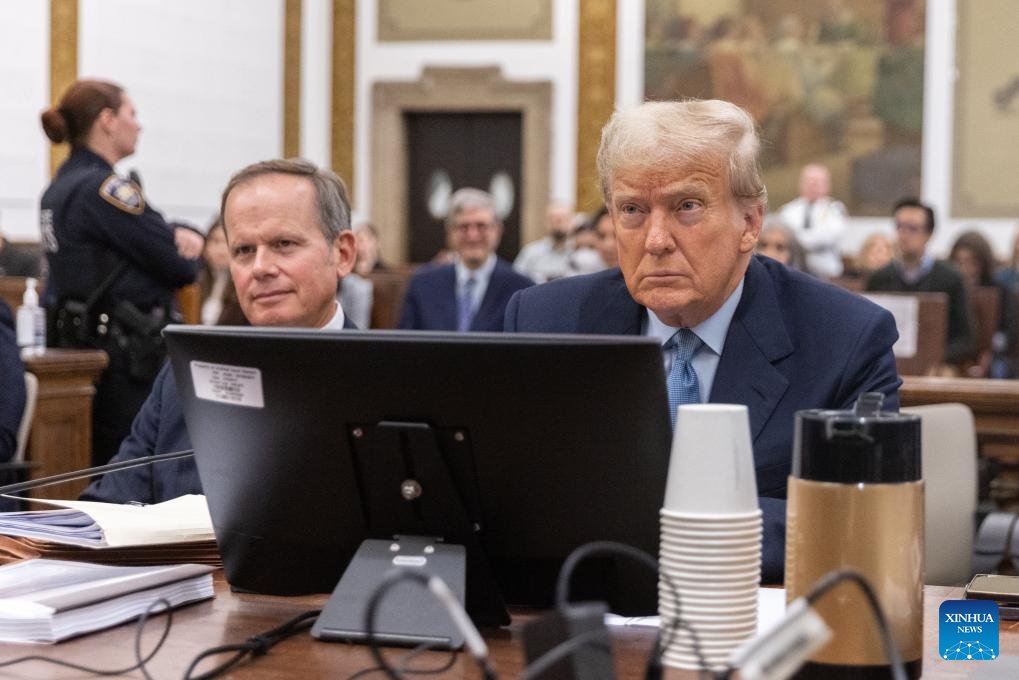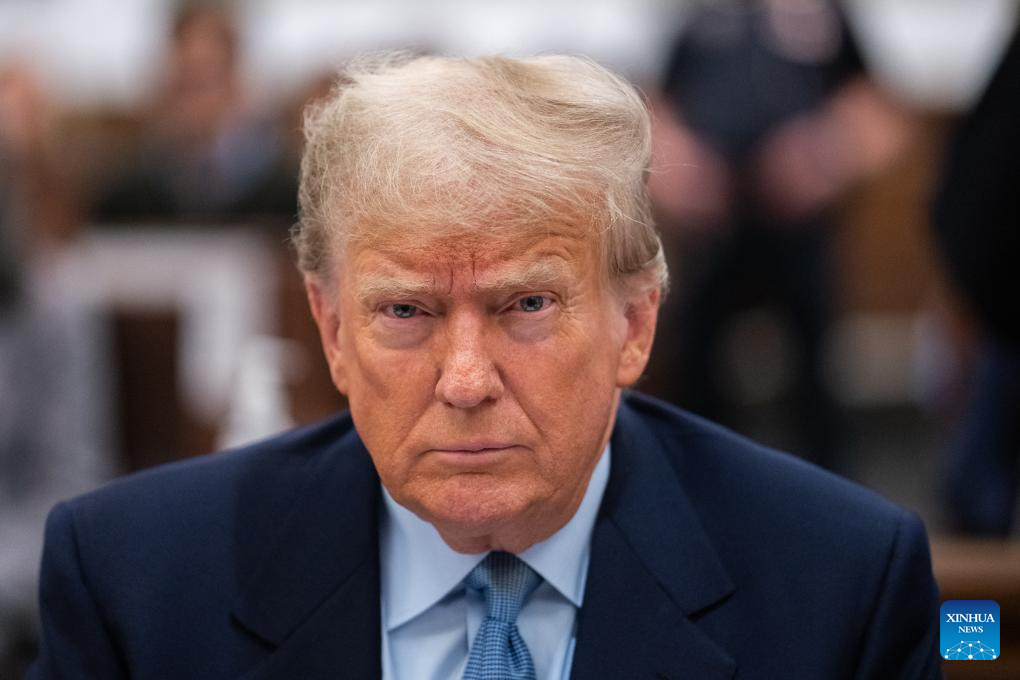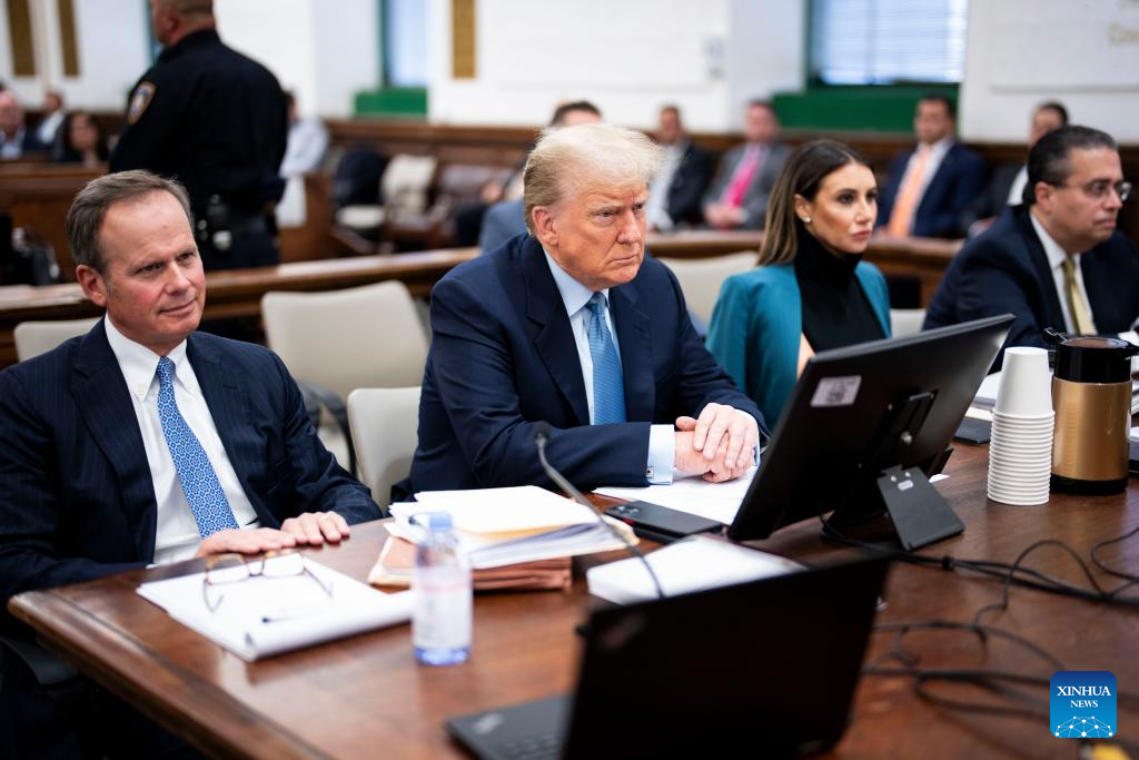 Former U.S. President Donald Trump is seen in the courtroom during his civil fraud trial at New York State Supreme Court in New York, the United States, on Oct. 18, 2023. (Jeenah Moon/Pool via Xinhua)