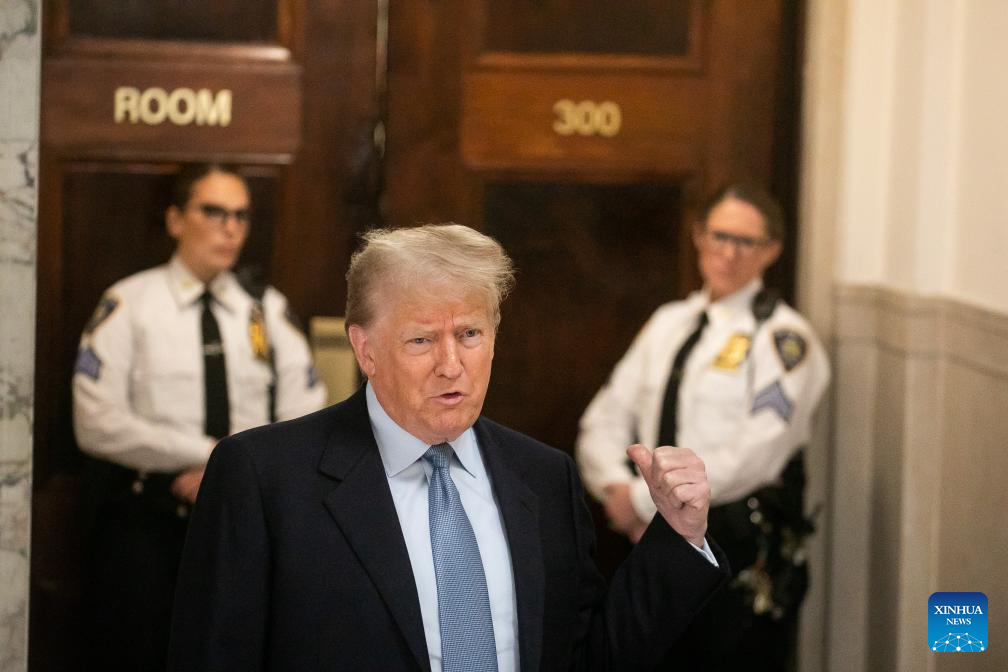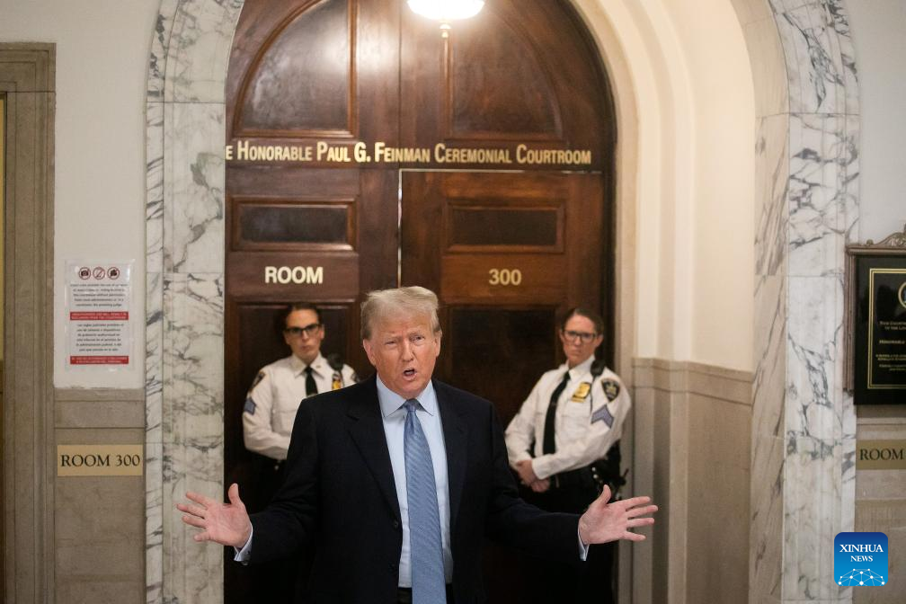 NEW YORK, Oct. 18 (Xinhua) -- A New York court employee was arrested Wednesday after trying to approach former U.S. President Donald Trump at a Manhattan courtroom, where Trump made another appearance in his civil fraud trial.