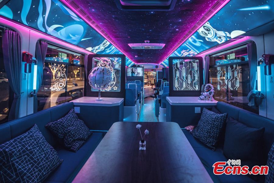 An interior view of a science fiction themed bus in Chengdu, southwest China's Sichuan Province, Oct. 18, 2023. (Photo provided to China News Service)