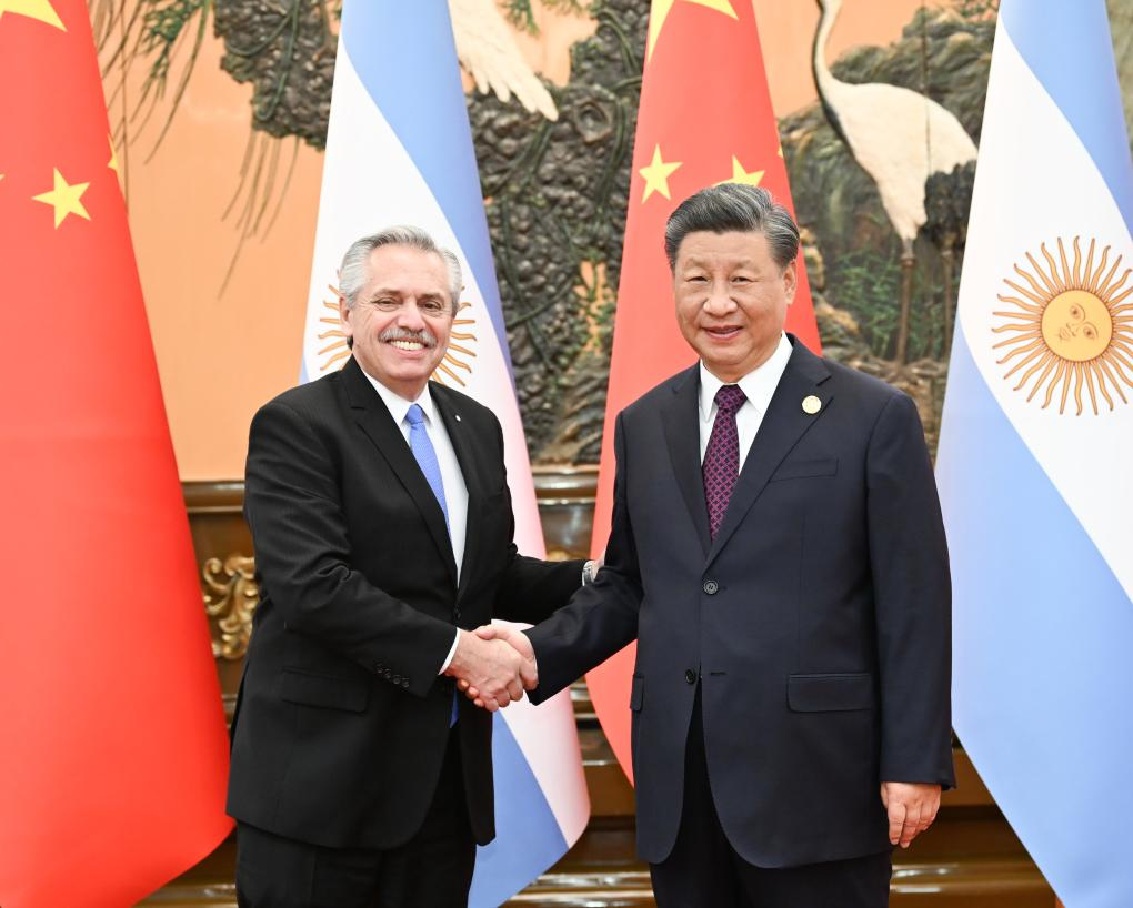 Xi congratulated Argentina on being invited to join the BRICS cooperation mechanism. He called on the two countries to strengthen strategic coordination within the frameworks of the UN, the G20 and the BRICS cooperation mechanism, and promote the implementation of the Global Development Initiative, Global Security Initiative and Global Civilization Initiative for the building of a community with a shared future for humanity.