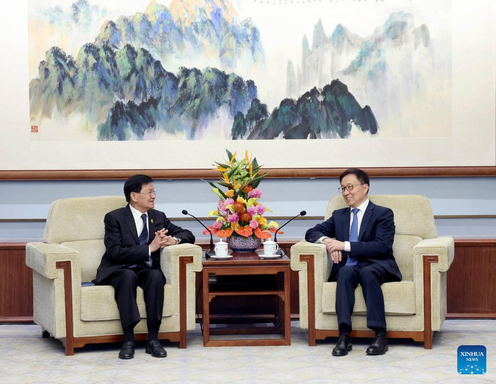 Han said under the strategic guidance of General Secretary Xi Jinping and General Secretary Thongloun, the building of a China-Laos community with a shared future has achieved fruitful results and their high-quality Belt and Road cooperation is at the forefront.