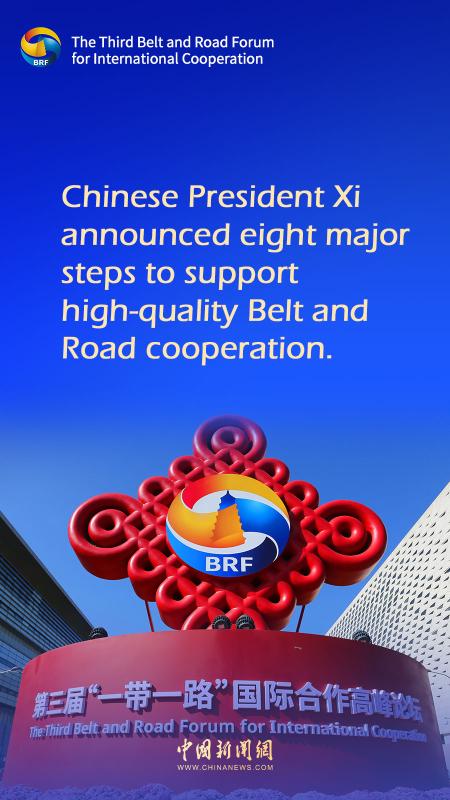 Chinese President Xi Jinping on Wednesday announced that China will take eight major steps to support the joint pursuit of high-quality Belt and Road cooperation with participating countries.