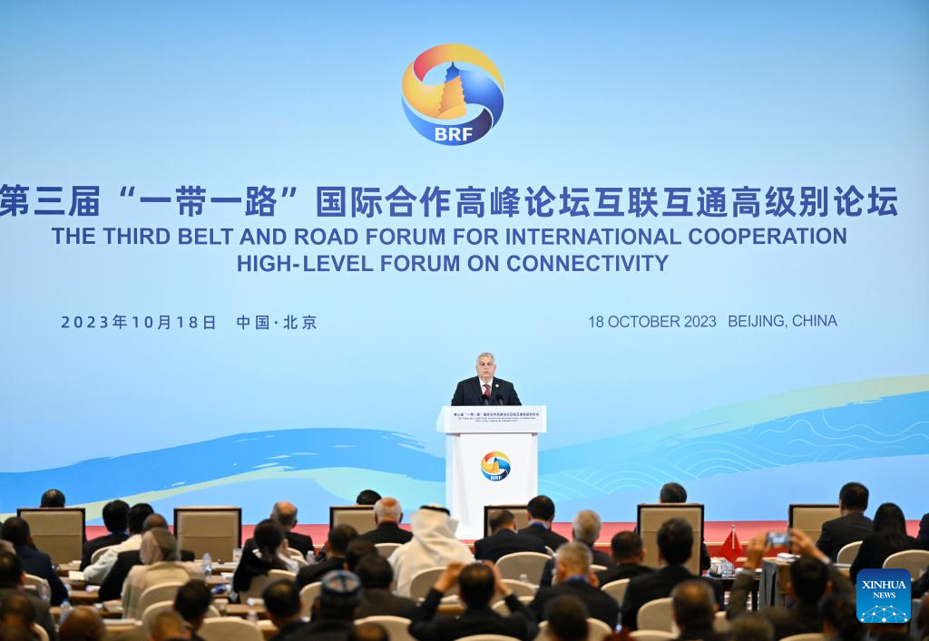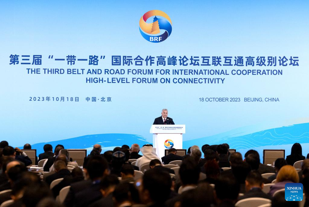 Hungarian Prime Minister Viktor Orban addresses the High-Level Forum on Connectivity of the third Belt and Road Forum for International Cooperation in Beijing, capital of China, Oct. 18, 2023. (Xinhua/Yin Bogu)