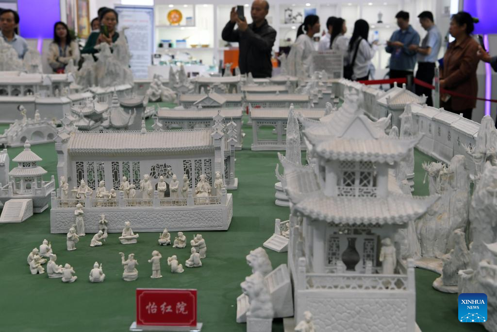 Visitors are seen at an exhibition area of the 2023 China Jingdezhen International Ceramic Expo in Jingdezhen City, east China's Jiangxi Province, Oct. 18, 2023. (Xinhua/Zhou Mi)