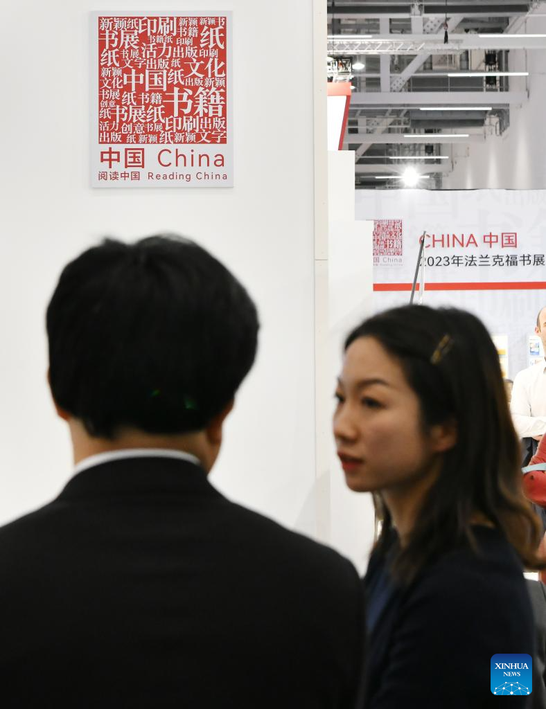 People visit the exhibition area of China at the 75th Frankfurt Book Fair in Frankfurt, Germany, Oct. 18, 2023. The 75th Frankfurt Book Fair opened its doors to visitors on Wednesday, with an opening ceremony held on Tuesday. The five-day event running through Oct. 22 will provide diverse programs catering to both trade professionals and the public. (Xinhua/Ren Pengfei)