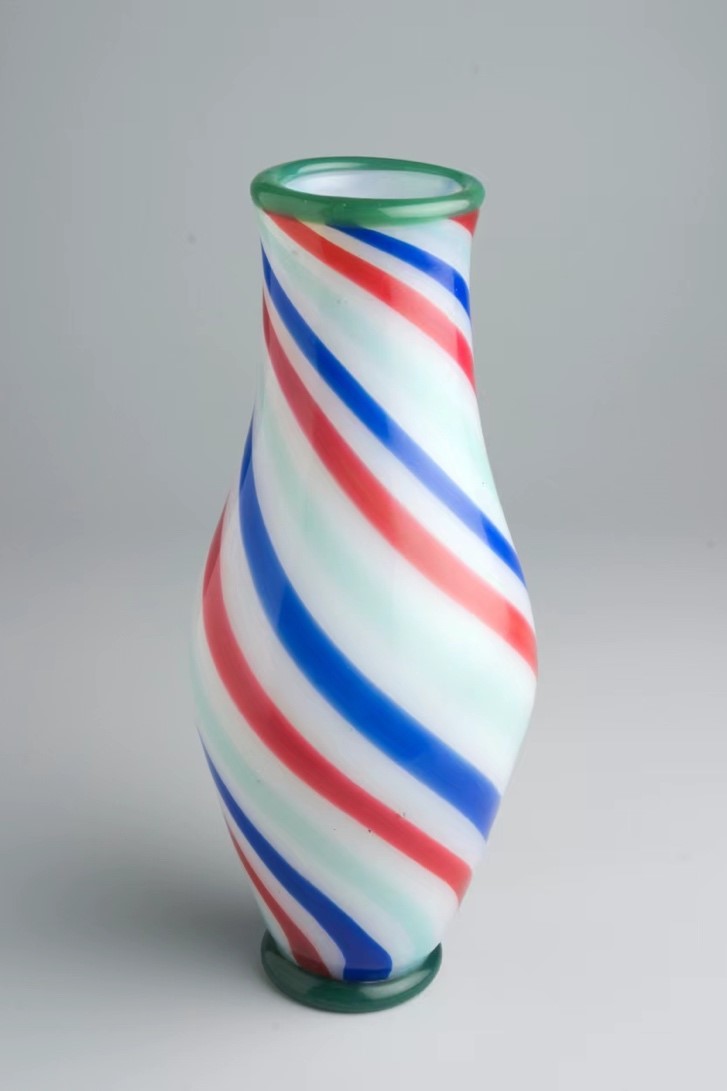 Glass vase with spiral threads of colored glass (vetro a fili), Qianlong mark and period (1736-1795). ? Bristol Museum & Art Gallery, N4746