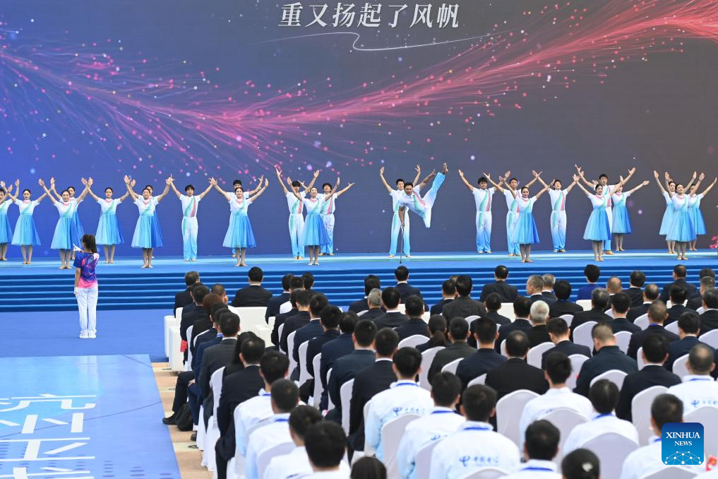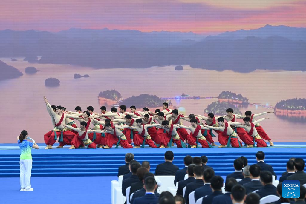Actors and actresses perform during the launch ceremony of the torch relay of the 4th Asian Para Games in Chun'an County, Hangzhou, capital of east China's Zhejiang Province, Oct. 19, 2023. (Xinhua/Huang Zongzhi)