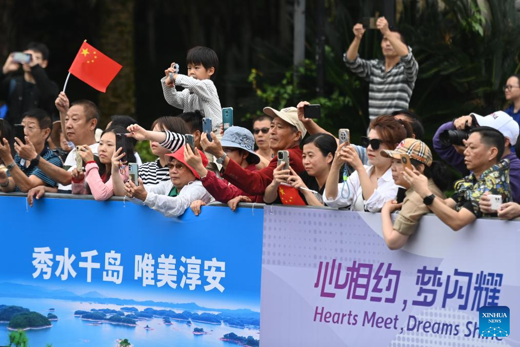 People watch the torch relay of the 4th Asian Para Games in Chun'an County, Hangzhou, capital of east China's Zhejiang Province, Oct. 19, 2023. (Xinhua/Huang Zongzhi)