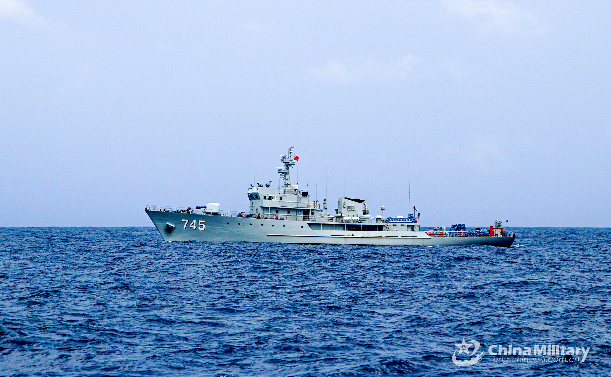 A minesweeper attached to a naval minesweeper flotilla of the PLA Navysails towards target sea area during a round-the-clockmine-countermeasures (MCM) training exercise. The exercise, which was held in unfamiliar sea areas from September 9 to September 13, aimed to hone the troops' combat capabilities.(eng.chinamil.com.cn/Photo by Dong Jianhua)