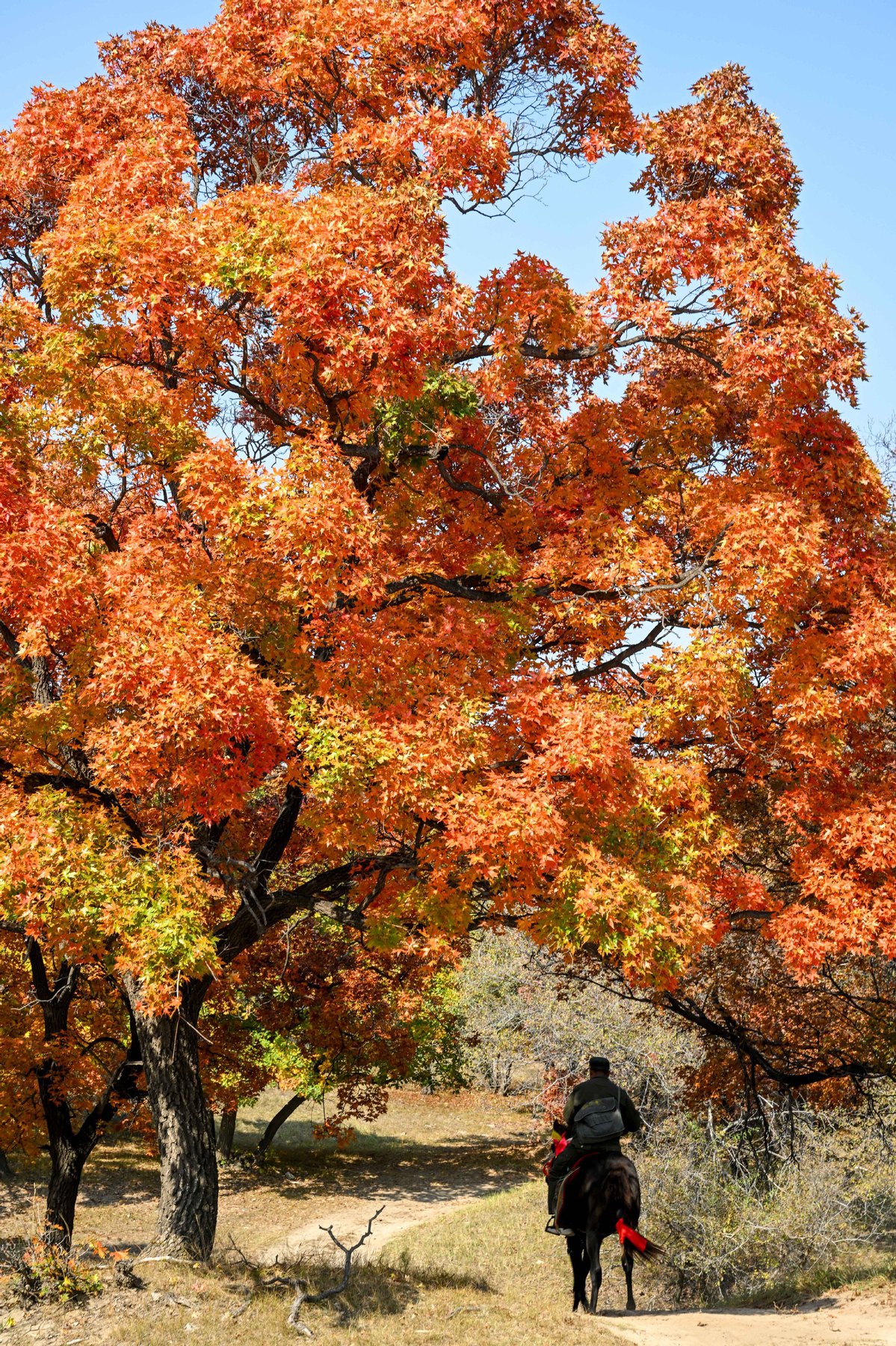 A staff member patrols a forest park in Horqin Left Wing Rear Banner of Tongliao city, North China's Inner Mongolia autonomous region, Oct 14, 2023. [Photo/Xinhua]