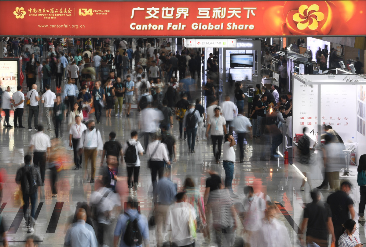 This photo taken on Oct 15, 2023 shows the scene of the 134th session of the China Import and Export Fair in Guangzhou, South China's Guangdong province. The 134th session of the China Import and Export Fair, also known as the Canton Fair, has attracted exhibitors and buyers from across the globe. About 60 percent of the exhibitors attending the import exhibition are Belt and Road Initiative (BRI) partner countries, and the number of buyers from BRI partner countries has witnessed an increase of 11.2 percent compared with last session of the Canton Fair. [Photo/Xinhua]