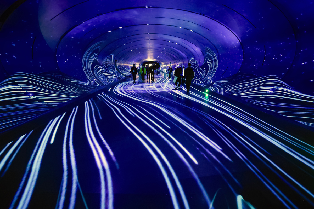 People visit Chengdu Science Fiction Museum, the main venue for the 81st World Science Fiction Convention (WorldCon) in Chengdu, Southwest China's Sichuan province, Oct 18, 2023. The 81st WorldCon opened on Wednesday. [Photo/Xinhua]