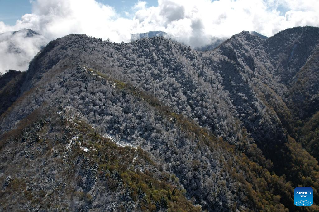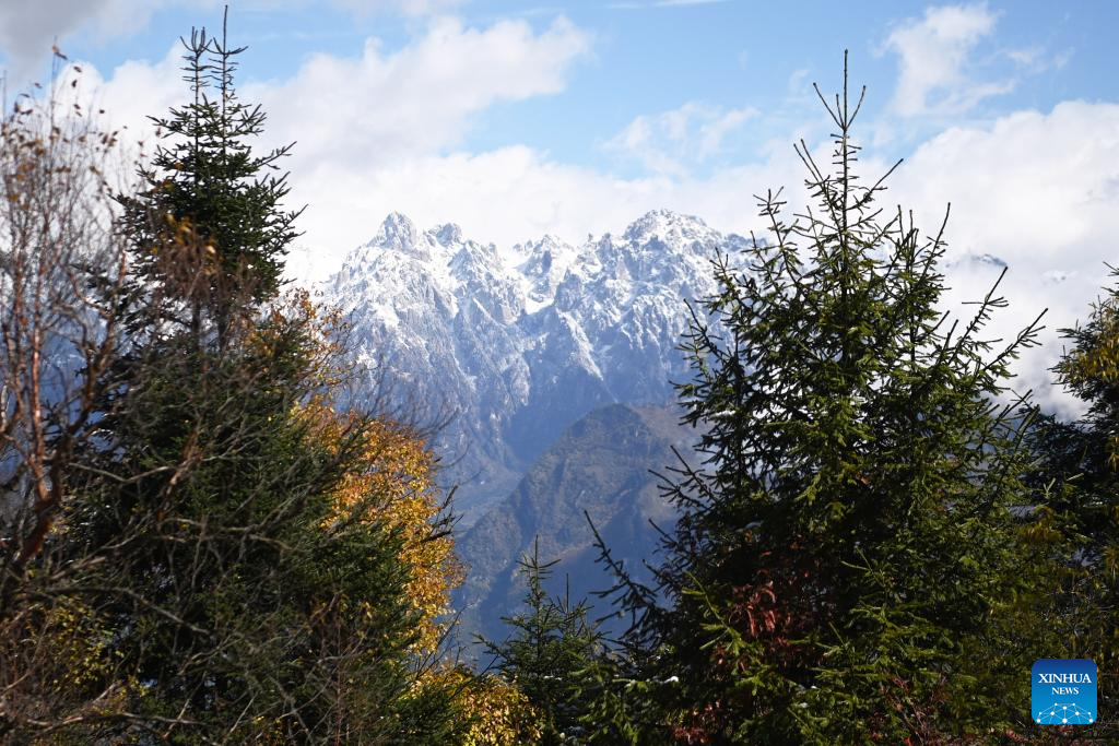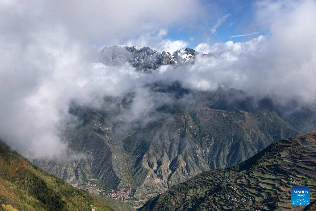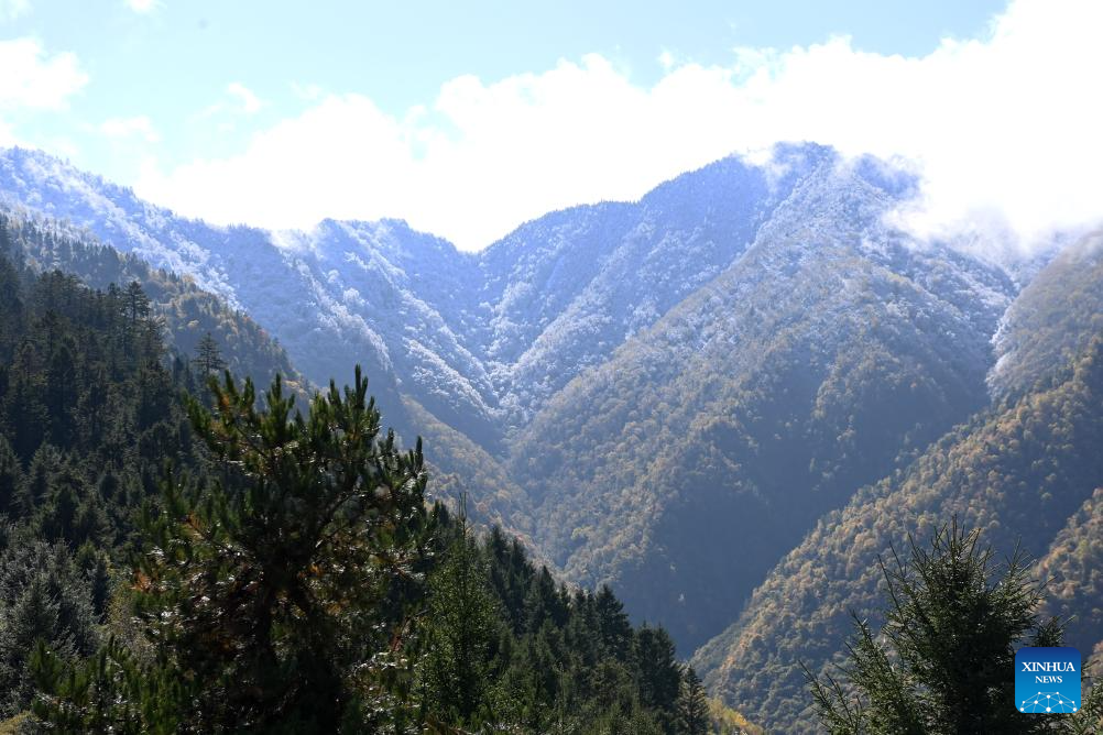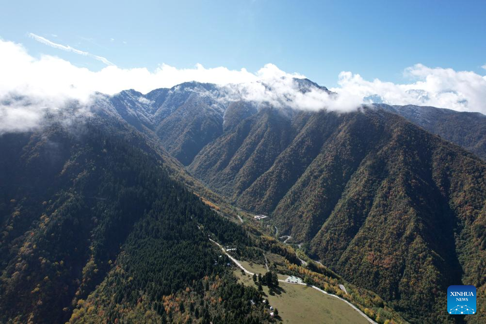 This photo taken on Oct. 19, 2023 shows the autumn scenery in Zhouqu County, Gannan Tibetan Autonomous Prefecture, northwest China's Gansu Province. (Xinhua/Fan Peishen)