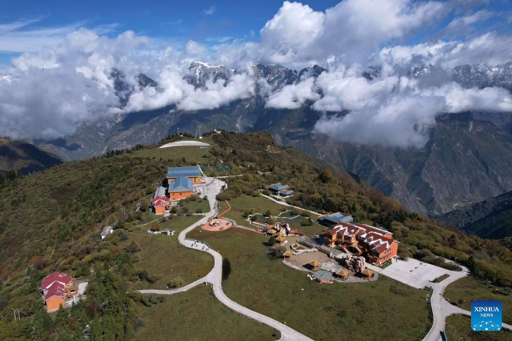 This aerial photo taken on Oct. 19, 2023 shows the autumn scenery in Zhouqu County, Gannan Tibetan Autonomous Prefecture, northwest China's Gansu Province. (Xinhua/Fan Peishen)