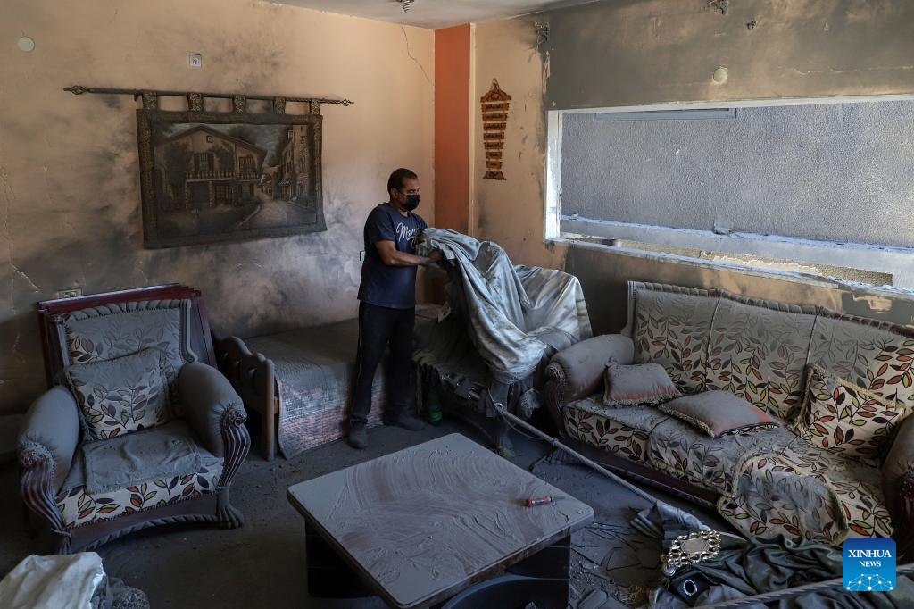 A man stands inside a dwelling destroyed in Israeli airstrikes in the southern Gaza Strip city of Khan Younis, Oct. 20, 2023. The number of Palestinian fatalities has exceeded 3,785, with over 13,000 individuals sustaining injuries since Oct. 7, said the health ministry in Gaza on Thursday. (Photo by Rizek Abdeljawad/Xinhua)