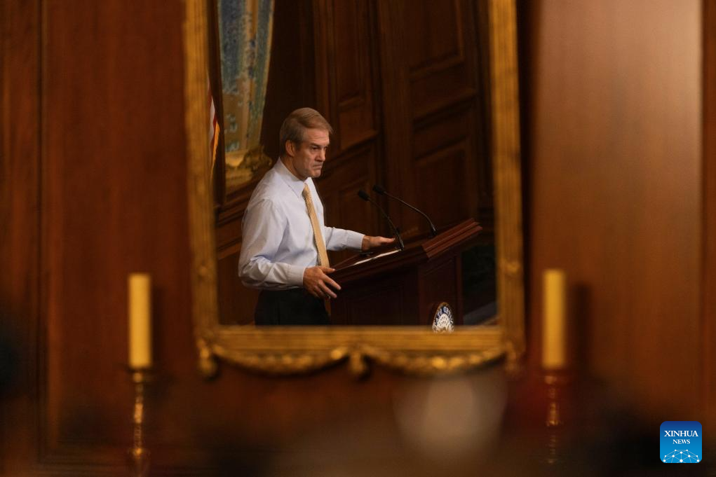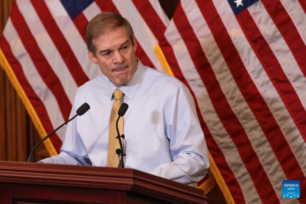 U.S. Right-wing Republican Jim Jordan, chairman of the U.S. House Judiciary Committee, attends a press conference in Washington, D.C., the United States, on Oct. 20, 2023. (Photo by Aaron Schwartz/Xinhua)