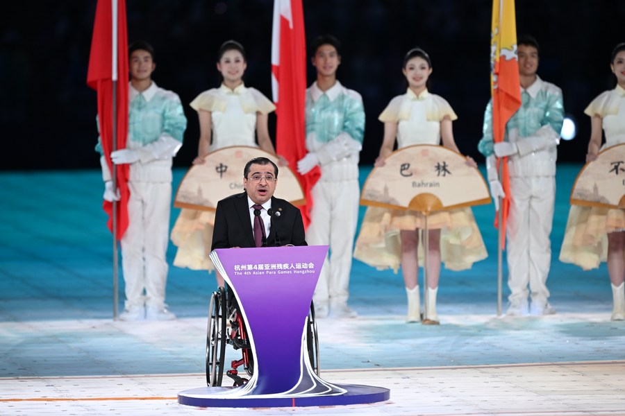 HANGZHOU, Oct. 22 (Xinhua) -- Two weeks after the close of the 19th Asian Games, the lotus-shaped Hangzhou Olympic Sports Center Stadium was filled with the spirit of competition and dreams of victory again as the 4th Asian Para Games opened on Sunday night.
