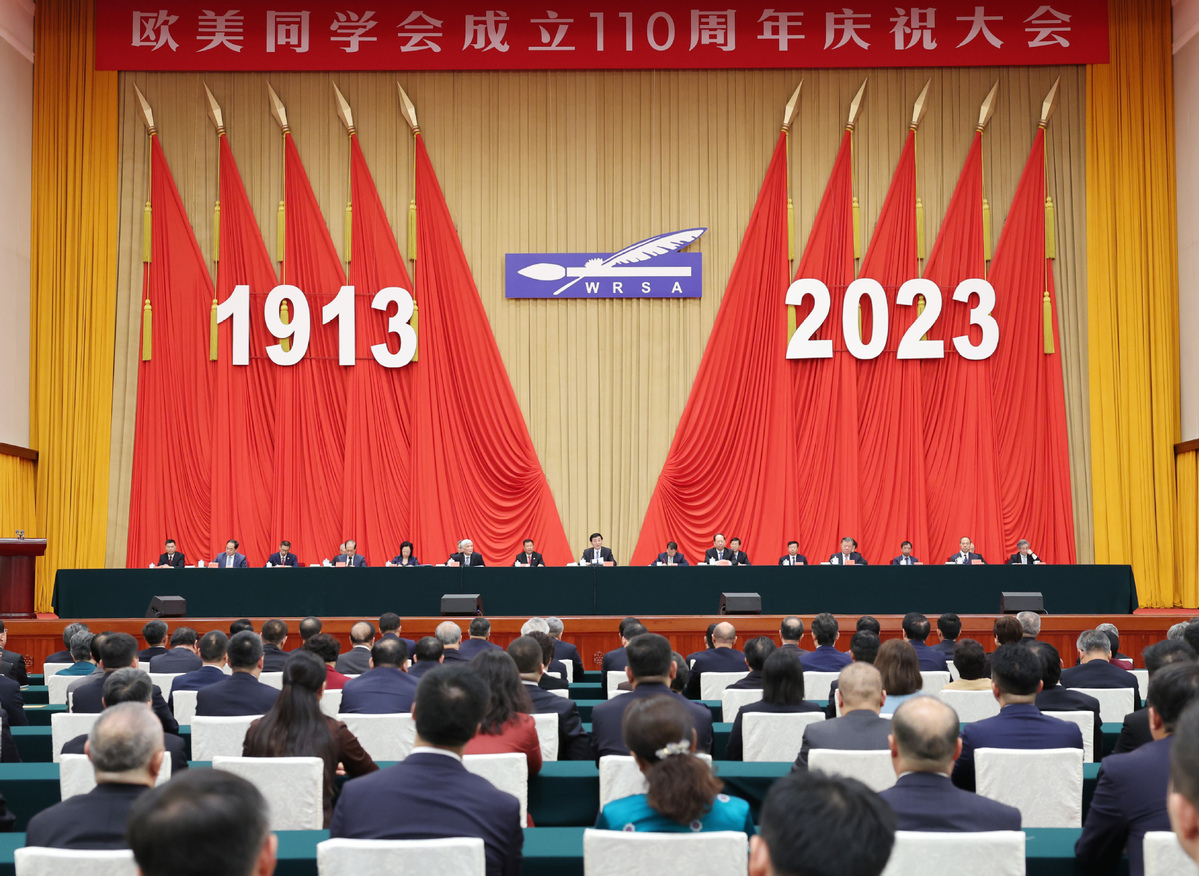 A gathering to celebrate the Western Returned Scholars Association's 110th anniversary is held in Beijing on Saturday. [Photo/Xinhua]