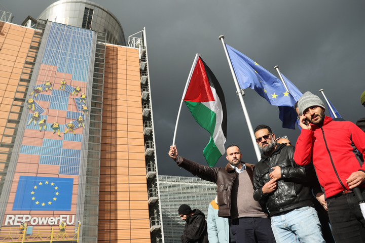 With a heavy guard of local police along the route of the demonstration, many demonstrators stayed for over two hours at the Schuman roundabout in front of the European Commission headquarters. Some of them also accused the European Union of its acquiescence to Israel's bombardment of the Gaza Strip.