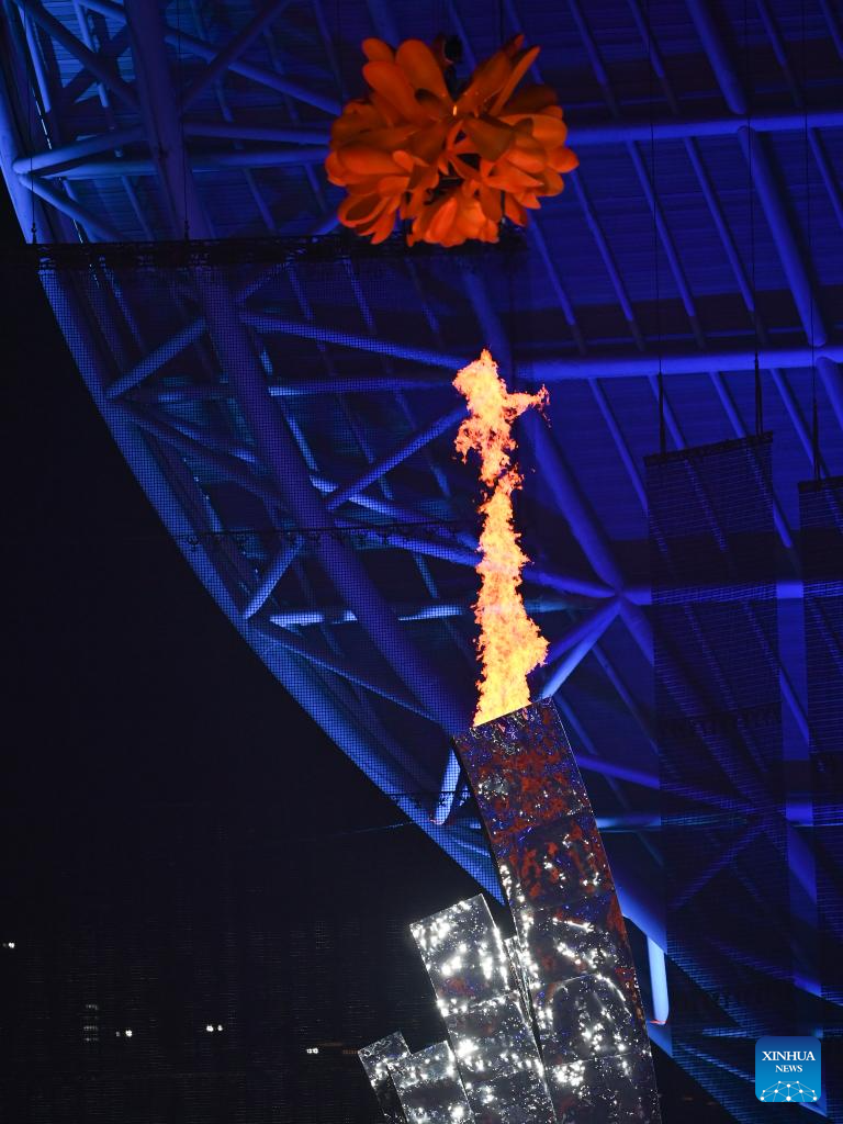 The cauldron is lit during the opening ceremony of the 4th Asian Para Games in Hangzhou of east China's Zhejiang Province, on Oct. 22, 2023. (Xinhua/Wu Zhizun)