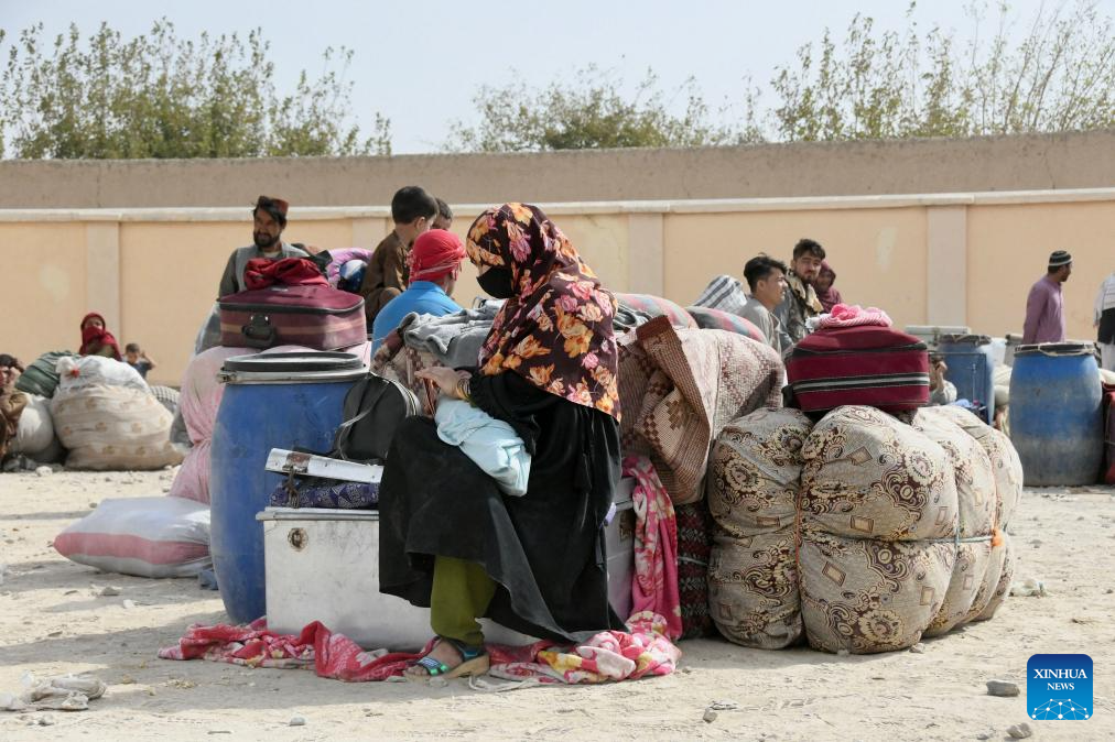 Newly-returned Afghan refugees are pictured in Kandahar Province, Afghanistan, Oct 21, 2023. More than 12,000 Afghan refugees have returned to south Afghanistan from Pakistan over the past months, deputy head of Refugees and Repatriation Directorate in south Afghanistan's Kandahar province Momin Agha said. [Photo/Xinhua]