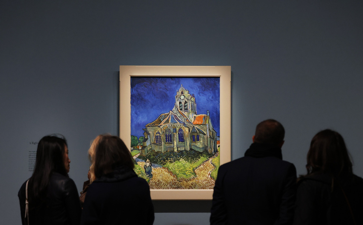 People look at "The Church at Auvers" at the exhibition "Van Gogh in Auvers-sur-Oise, the Final Months" at Orsay Museum in Paris, France, Oct 16, 2023. The exhibition opens for the public from Oct 3, 2023 to Feb 4, 2024. [Photo/Xinhua]