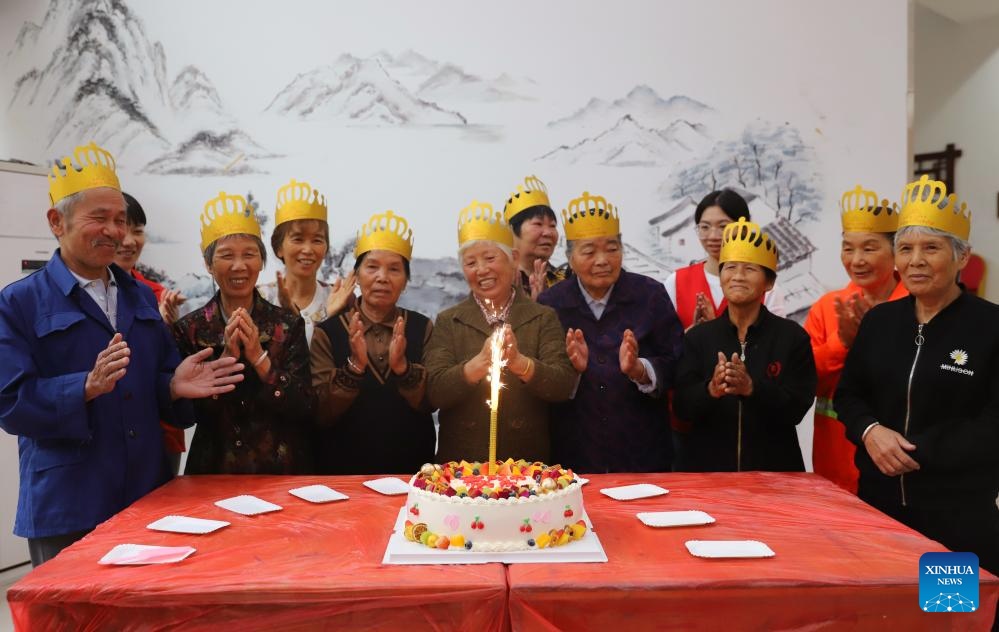 Volunteers hold a group birthday party for elders in Luqiao District, Taizhou, east China's Zhejiang Province, Oct. 22, 2023. The Chongyang Festival, also known as the Double Ninth Festival, is an annual festival to show respect and care for the elderly throughout China. The festival falls on the ninth day of the ninth Chinese lunar month, which is October 23 this year. (Photo by Jiang Youqing/Xinhua)