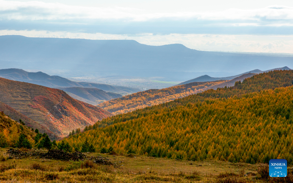 This photo shows the autumn scenery of Daqingshan Mountain in Shangyi County, Zhangjiakou City, north China's Hebei Province, October 8, 2023. In autumn, leaves change color as the temperature falls. Green, yellow, orange, and red hues paint the landscape in north China, creating beautiful color palettes. (Photo by Deng Ping/Xinhua)