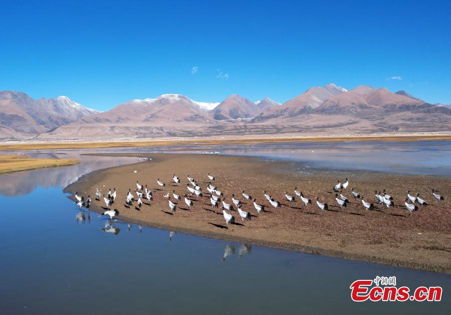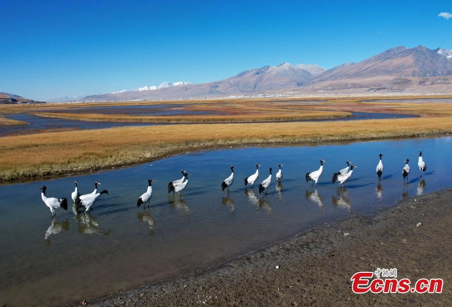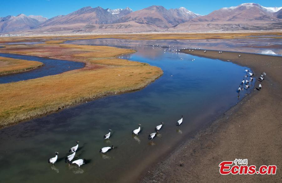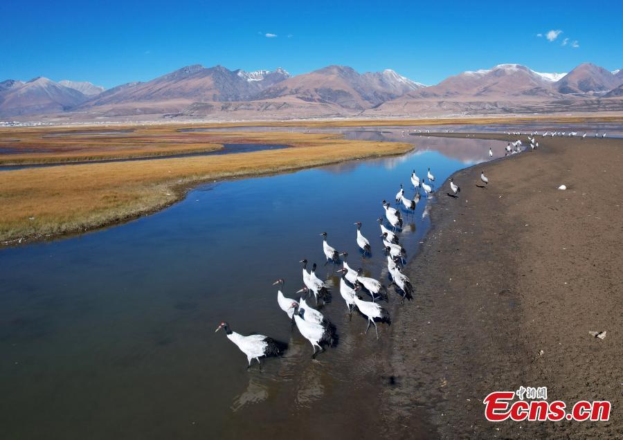 Black-necked cranes enjoy winter in Tibet