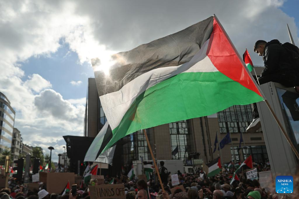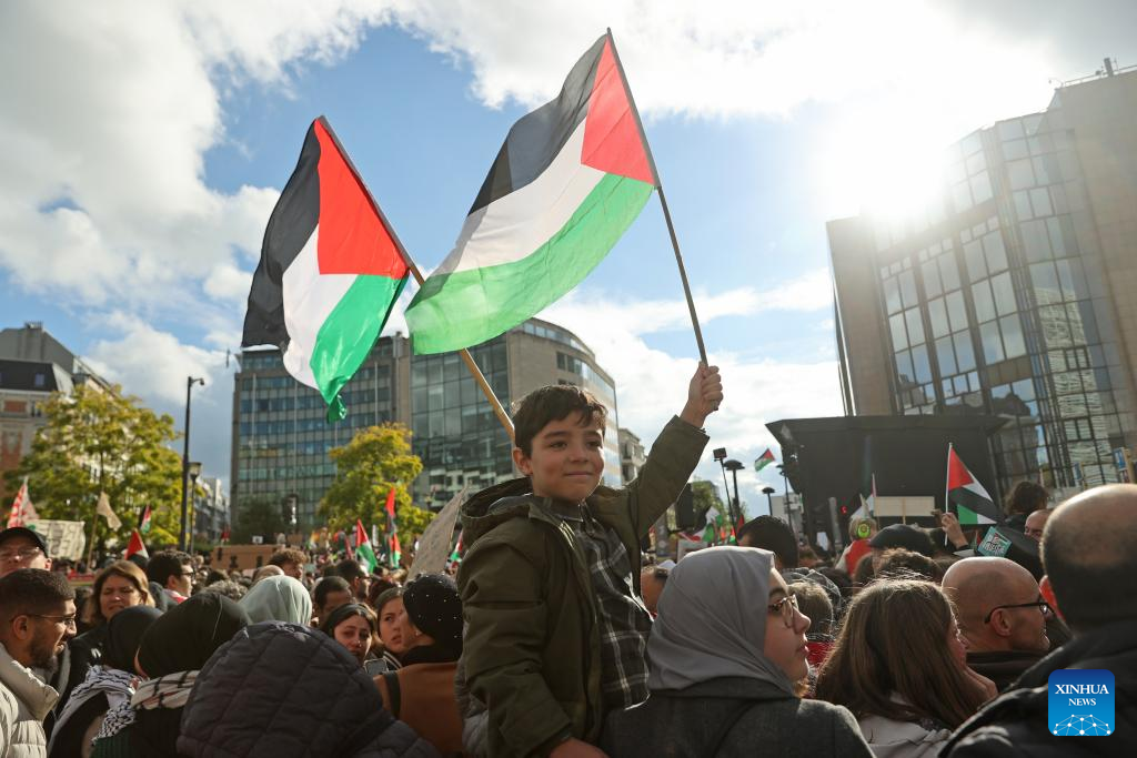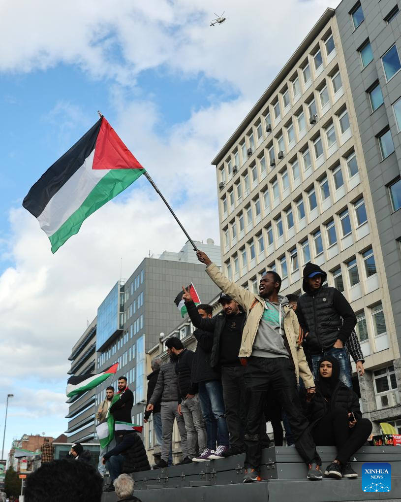 BRUSSELS, Oct. 22 (Xinhua) -- A large demonstration rallied on Sunday afternoon in Brussels, calling for an immediate ceasefire in Gaze Strip.